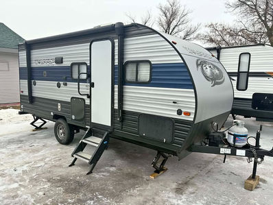 Fantastic Layout on this 2020 Cherokee Wolf Pup Model 18TO. One of the best layouts that offers more than you typically find in a smaller camper this size. At only 3797 pounds dry, and an overall length of 23' including the hitch, it will allow you to pull with a wide variety of vehicles. Sleeps 6 that includes the front queen bed, both that makes into a bed, jackknife sofa that flips down into a bed, and the single bunk that hides away behind the couch when not in use. Here are some other features: 6 Gallon hot water heater - Outdoor shower - Power Electric Awning - Exterior LED awning lights - Exterior Fridge - Outdoor speakers - Large electric slide out - 20,000 BTU propane furnace - 13,500 BTU Rooftop Air Conditioner - 30 amp electric service - Rooftop Solar Panel to keep your battery charged no matter where you are at. Everything has been gone through and tested, and is currently winterized. No leaks, very good condition inside and out. Great time of the year to get a great value on a very nice RV and be all ready for spring. Clean title.