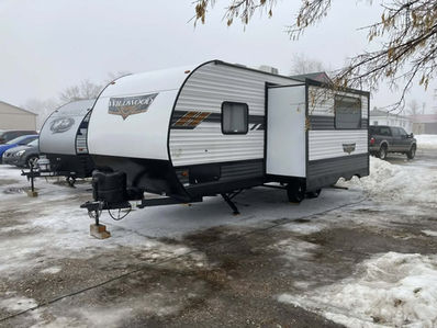 Great time to buy and save $ on this very nice well-kept 2022 Forest River Wildwood Model 22RBS. Very nice condition inside and out, very little use. Great floor plan and quality-built, this RV has been fully gone through, everything tested and is winterized. It is 26' 11" overall length including the hitch. 5928 lbs dry weight. 7765 lbs Gross weight. 765 lbs hitch weight. Features include: large electric slide out - electric fireplace - power electric awning - power leveling/stabilizer landing legs - sleeps 4, front queen bedroom, chase lounge folds down into a bed. Floor ducted propane forced air furnace - 15,000 BTU Ducted Rooftop air conditioner - large refrigerator and freezer - large Bathroom with lots of cabinets - nice side kitchen pantry - 30 amp electric service - spare tire included.